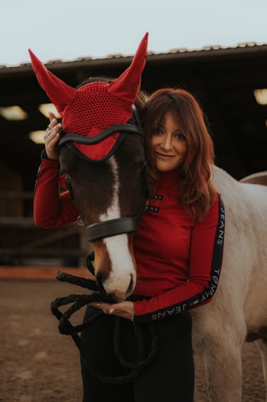 Dans un écrin de nature, j’ai eu la chance de photographier Amande et son jeune poulain Mambo, un duo uni par une complicité rare.