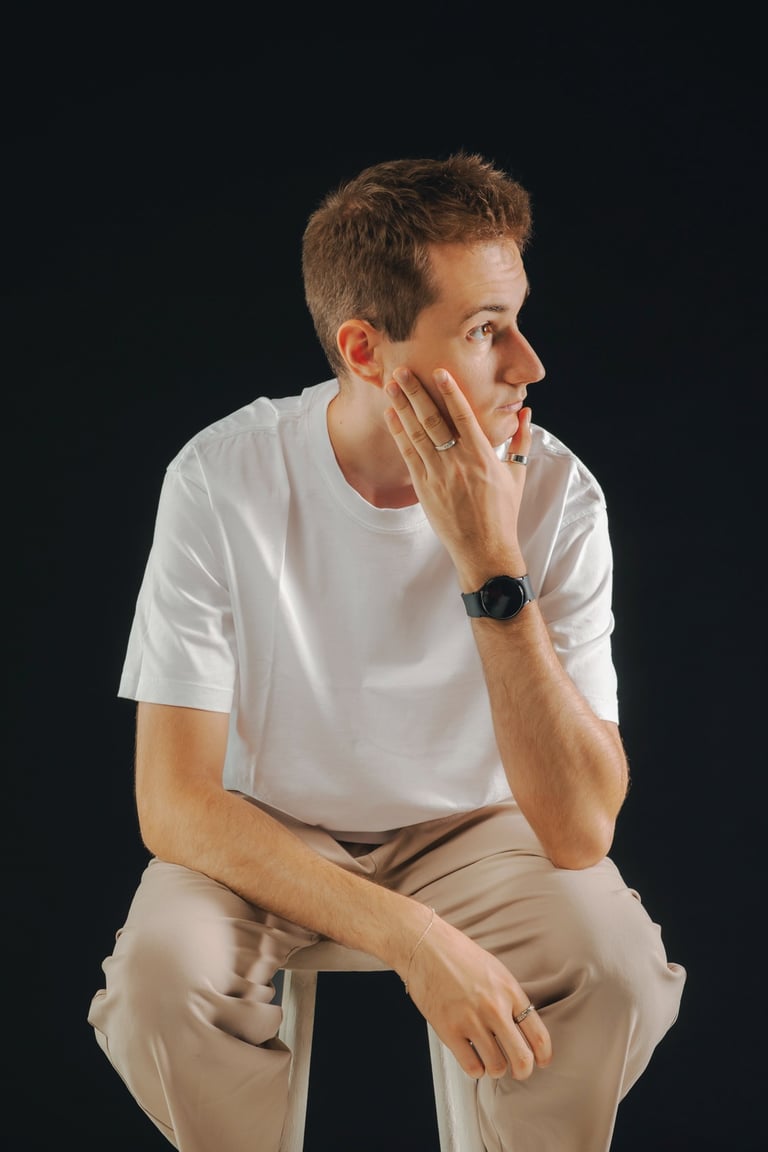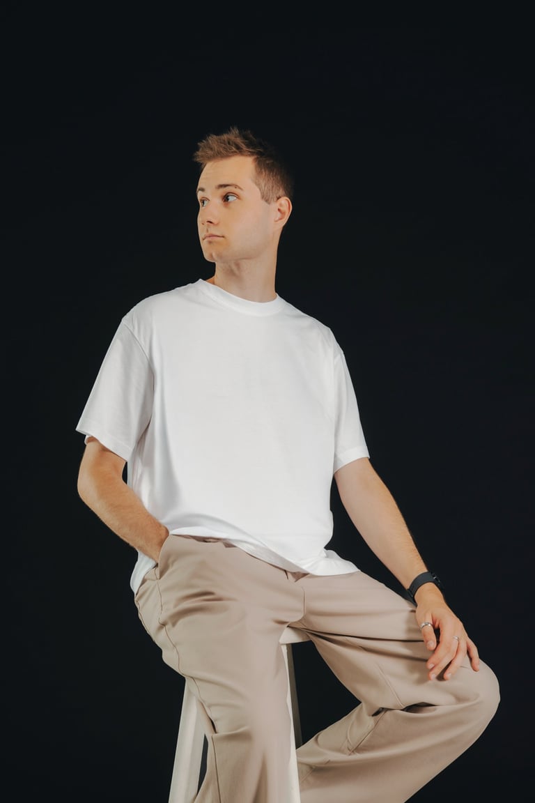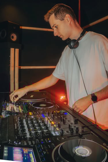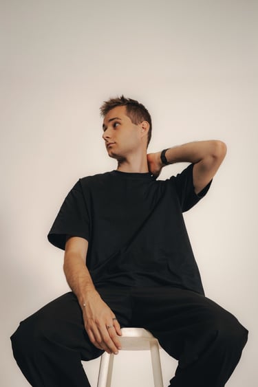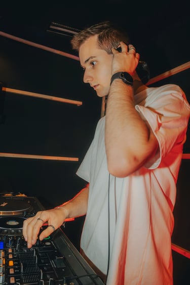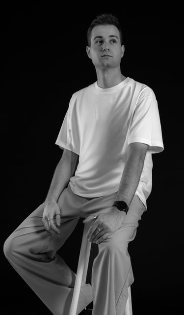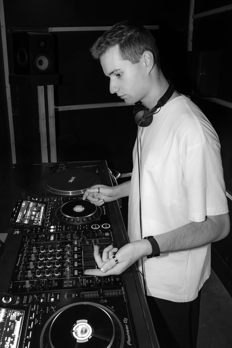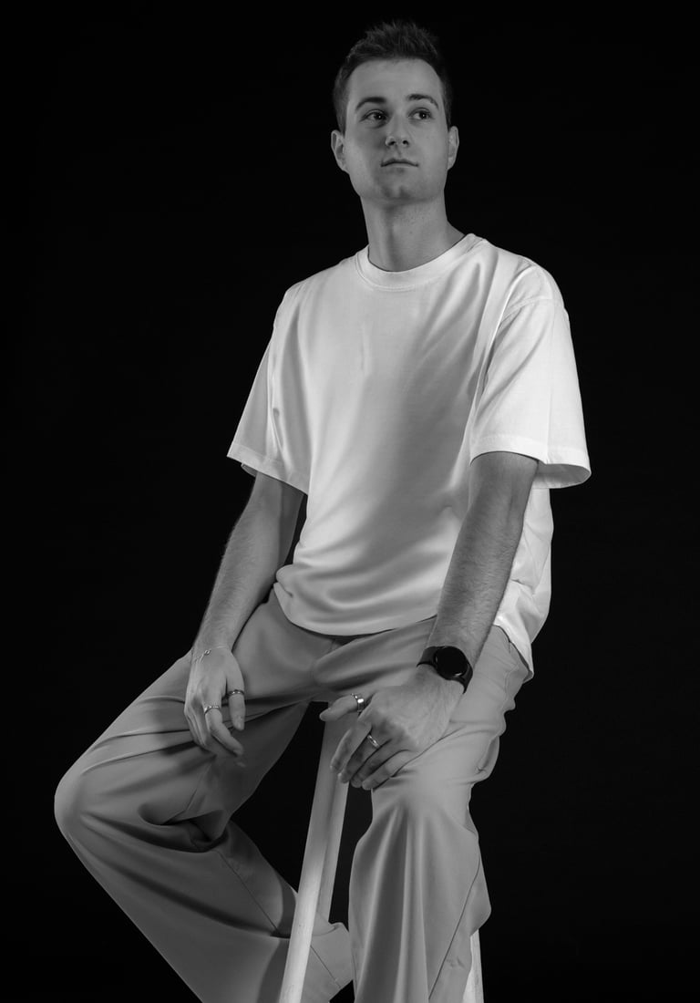 Andronix est un artiste électro et DJ passionné. Son identité visuelle repose sur une esthétique minimaliste, jouant entre le contraste du blanc et du noir. Ses photos de presse le représentent dans cet univers épuré, mais aussi en pratique derrière les platines, capturant l’intensité et la passion derrière sa pratique.